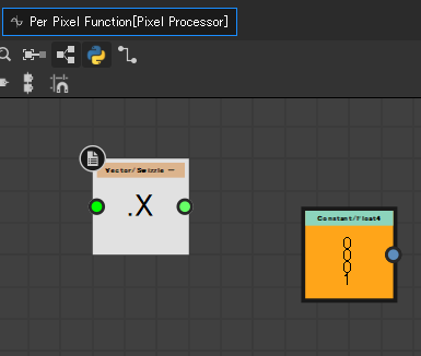 そういった画像処理系ノードは、「PixelProcesser」詳細ウィンドウ「Per Pixel Function」の「編集」からアクセスできる専用のグラフビューにて使用することができます。