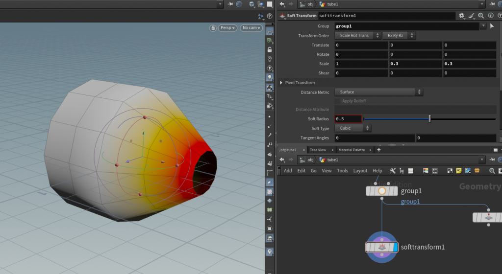Houdiniでソフト移動・スケールする時は、「softtransform」や「softpeak」を使うと良い。※Houdini21.0